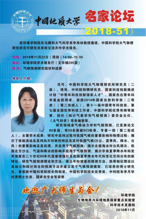 [11月22日]名家論壇:中國科學院大氣物理研究所范可研究員學術報告