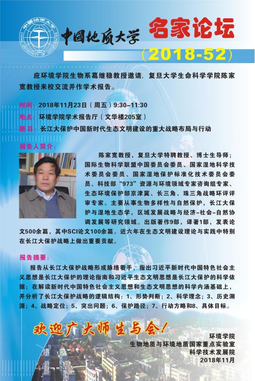 [11月23日]名家論壇:復旦大學生命科學學院陳家寬教授學術報告