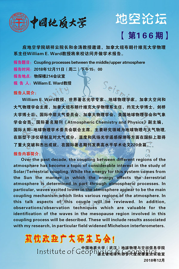 [12月11日]地空論壇:加拿大紐布朗什維克大學物理系主任William E.Ward教授學術報告