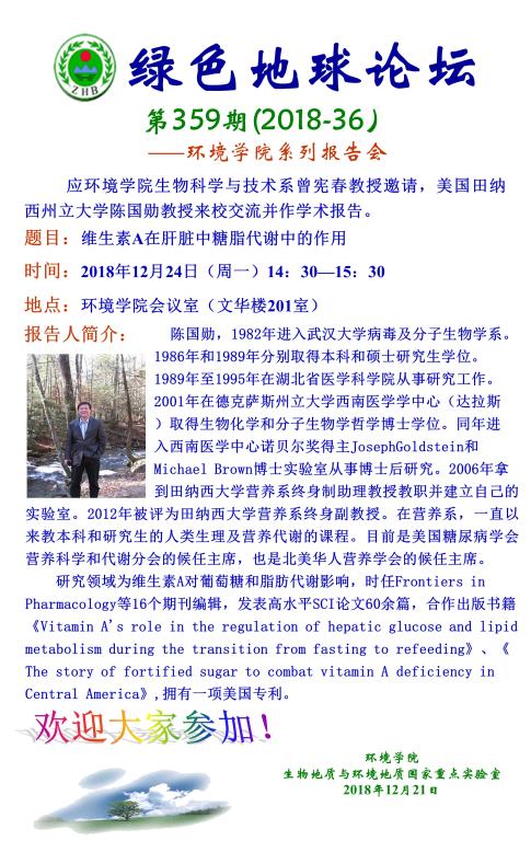 [12月24日]綠色地球論壇:美國田納西立大學(xué)陳國勛教授學(xué)術(shù)報告