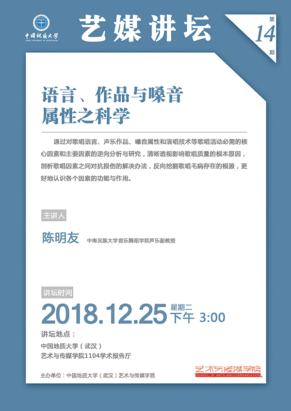 [12月25日]藝媒講壇:中南民族大學音樂舞蹈學院聲樂系陳明友副教授學術報告