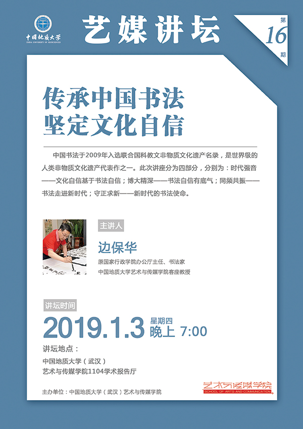 [1月3日]藝媒講壇:原國家行政學院辦公廳主任 書法家邊保華學術報告