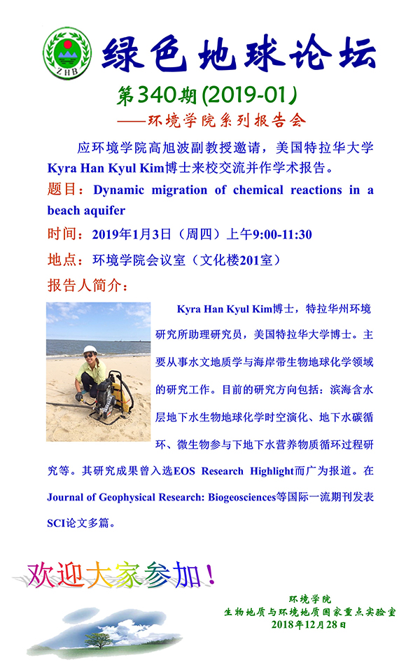 [1月3日]綠色地球論壇:美國(guó)特拉華大學(xué)Kyra Han Kyul Kim博士學(xué)術(shù)報(bào)告