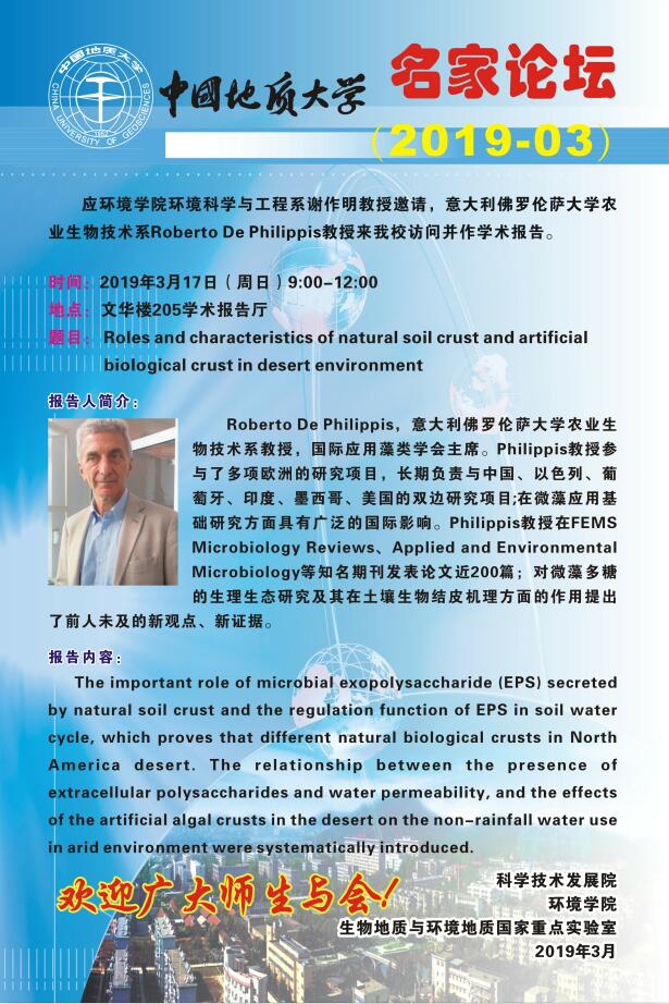 [3月17日]名家論壇:意大利佛羅倫薩大學農業生物技術系Roberto De Philippis教授學術報告