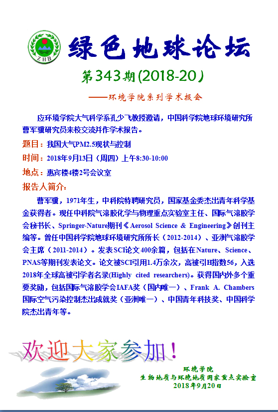 [9月13日]綠色地球論壇:中科院地球環境研究所曹軍驥研究員學術報告