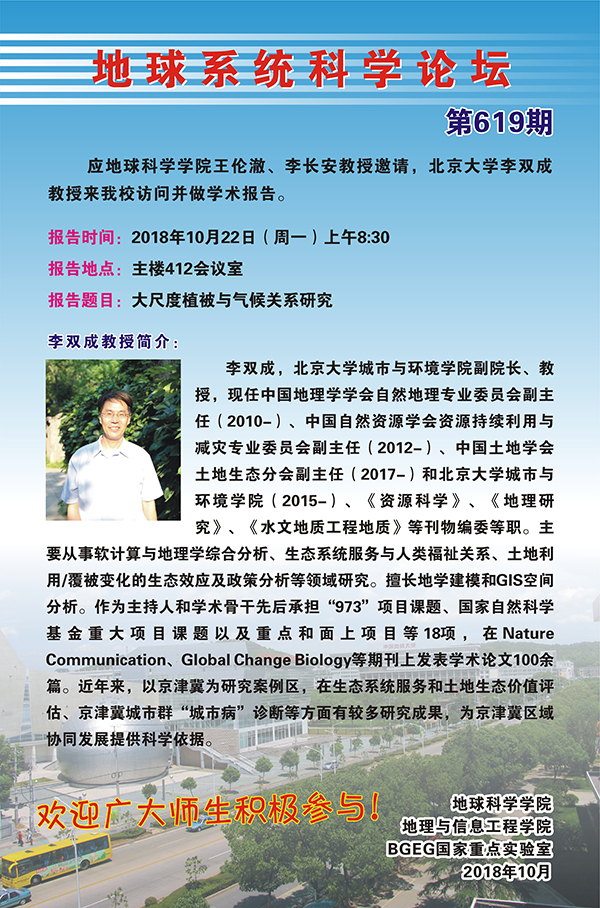[10月22日]地球系統科學論壇:北京大學李雙成教授學術報告
