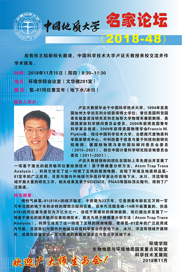 [11月15日]名家論壇:中國科學技術大學盧征天教授學術報告
