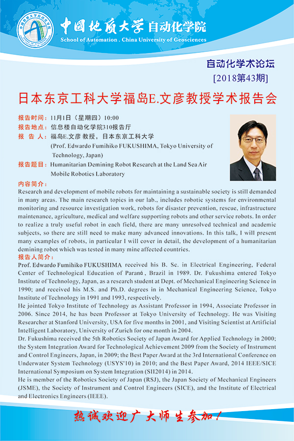 [11月1日]自動化論壇:日本東京工科大學福島E.文彥教授學術報告