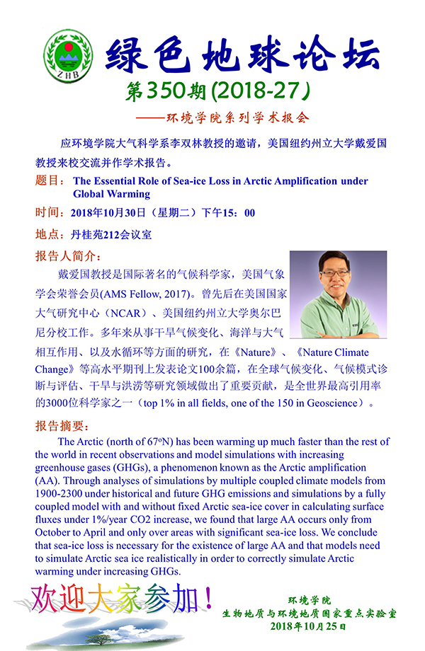[10月30日]綠色地球論壇:美國紐約州立大學戴愛國教授學術報告