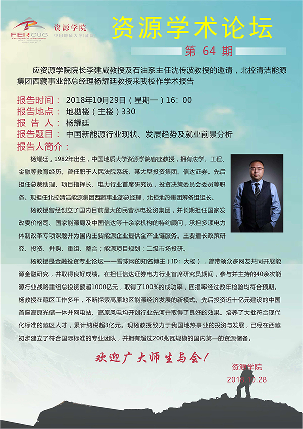 [10月29日]資源學(xué)術(shù)論壇:北控清潔能源集團(tuán)西藏事業(yè)部總經(jīng)理?xiàng)钜⒔淌趯W(xué)術(shù)報(bào)告